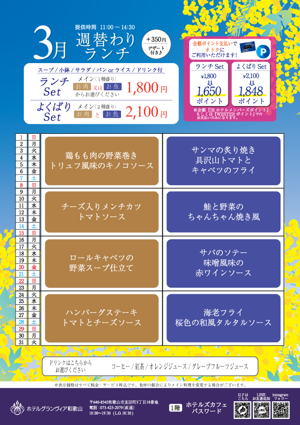 1月の週替わりランチカレンダー