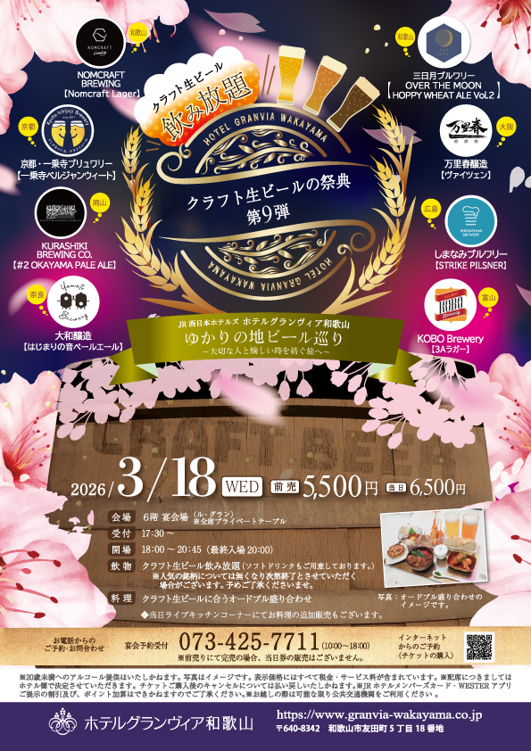 - 【 宴会イベント 】クラフト生ビールの祭典 第9弾 2026/3/18 開催!
